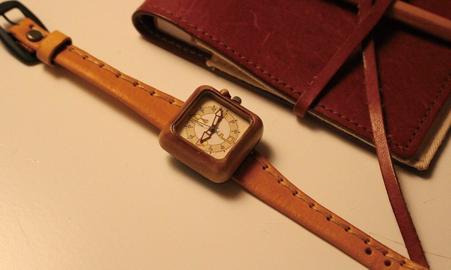 Kotolu:ライトブラウン:古道具たちがつくった,あたたかみのある腕時計:くるき亭のオリジナルデザインの時計