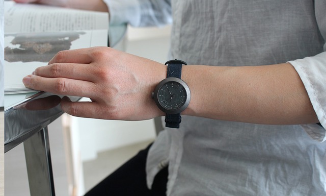 鯉が泳ぐ池に掛かった太鼓橋の裏蓋、着物柄の入った布地を使用したベルト。 やや底に広がっていく円錐形の柔らかな印象の時計本体など、和のデザインの要素を組み合わせて作り上げた腕時計です。 「和の時計が欲しいな」と思っても、なかなか普段使いが難しかったり・・・と諦めてしまいがちです。 そこで、デザイン、着物柄など、和の要素がたくさん詰まった腕時計ですが、外見はどんなシーンでも合うように一見シンプルに仕上げて、普段の生活でもあまり違和感なく使えて、しかも「これは和の要素が・・・」と語れる、そんな腕時計を作ってみました。 一見シンプルな中に、和の要素を散りばめました。 「時計本体」・・・金具など余計な装飾を配し、やや底に広がっていく円錐形の柔らかな印象の時計本体は、潔さとやわらかな印象を同時に醸し出しています。 時計とベルトを繋ぐ金具が裏面に隠し、曲面をゆるやかに使用した時計本体の形状から、独特のシンとした雰囲気を醸し出しています。 また、時計の一番弱い部分であるリューズ部分は、太鼓橋をモチーフにした半円形の金具で守っています。 「時計加工」・・・まるで鉄瓶のような黒色に仕上げました 「文字盤」・・・文字盤の中央には雲月を象った型押しを行い、柔らかい字体の旧漢字表記のインデックスを配置しています。 「時計の針」・・・潔さを感じる、シンプルでシャープなデザインの針は、中の白色部分を蓄光加工をしており、光を蓄え、暗いところで光ります。(針の面積が小さいので発光は弱いです。) 「裏蓋」・・・川に見立てたベルトに掛かる「太鼓橋」をモチーフにデザインされた裏蓋。実は、ベルトを抜くと、鯉が泳いでいます。 裏蓋部分は、消墨色の落ち着いた色に仕上げています。 「布地ベルト」」・・・本革と和柄の布地を手縫いで縫い合わせて使用しています。 見えない中の芯や強度が必要な場所は本革を、あとの場所は和の布を贅沢に何重にも手縫いで縫い合わせて制作しました。 今までの和ごころ時計のベルトよりも、強度もあり、しなやかで、つけ心地もアップしています。 「撮影に使用したベルトの種類」・・・今回、この時計には、「黒墨」を合わせて撮影しました。 (ベルトは固定です。) (商品の仕様) 素材 : 本革、真鍮、樹脂コーティング紙、ステンレス、アクリル、ゴム、ポリエチレン、鉄 サイズ:  男女フリーサイズ(腕14cmから18センチをカバー)です。 ※ 写真は、普通サイズ14センチの女性です。 ムーブメント: クォーツタイプ(電池で動く一般的な時計です) 塗装: メッキ加工:裏蓋・金具など一部は塗装。 時計サイズ: 時計本体約:3、5センチ 重さ: 約60グラム 電池交換: 出来るだけ、くるき亭での交換をオススメします。 お届けまでの期間: オーダーを頂いてから制作するため、現在10日間を頂いております。