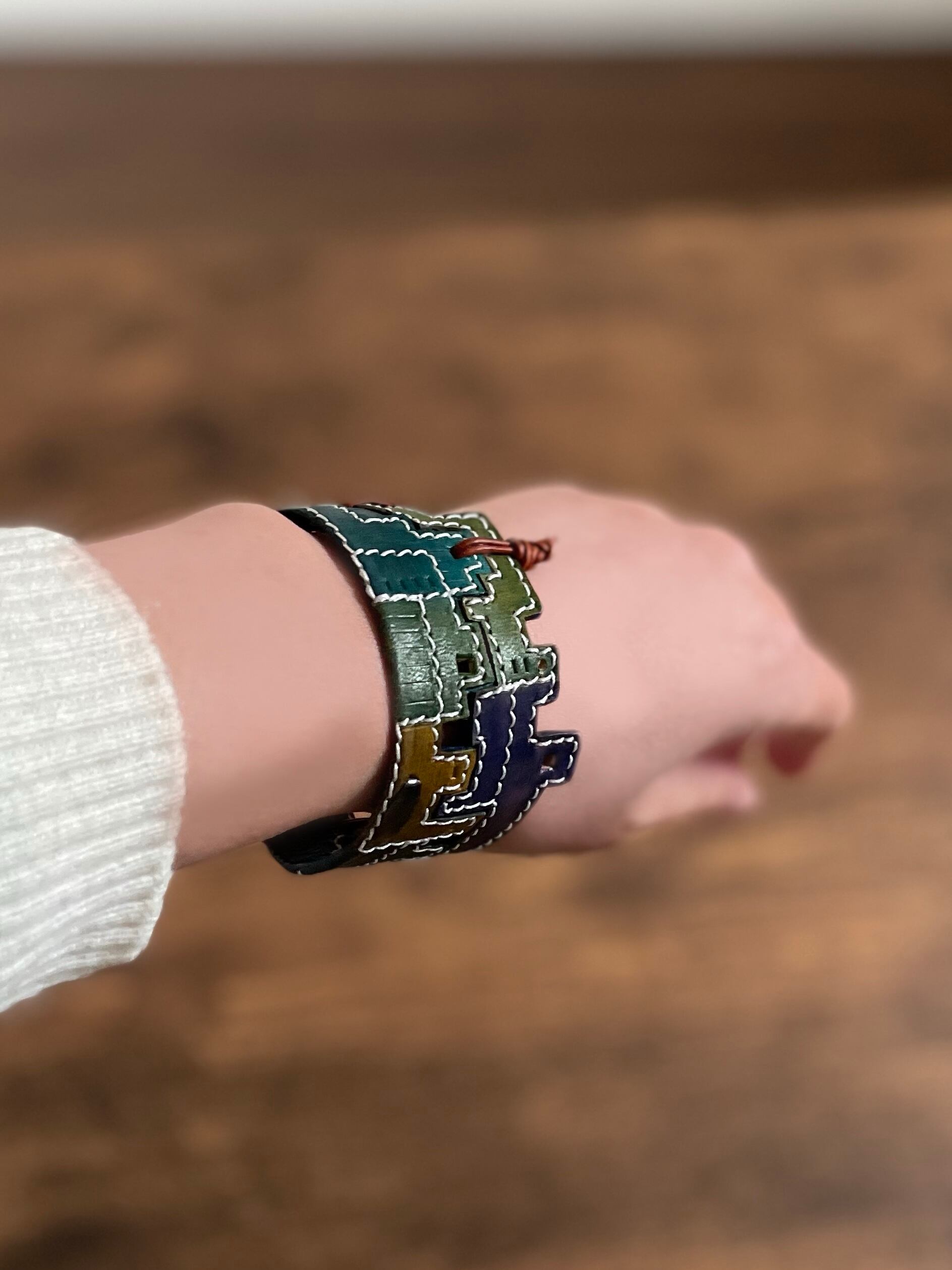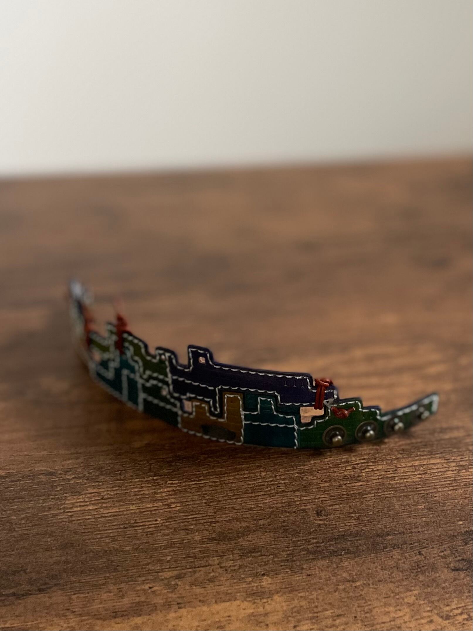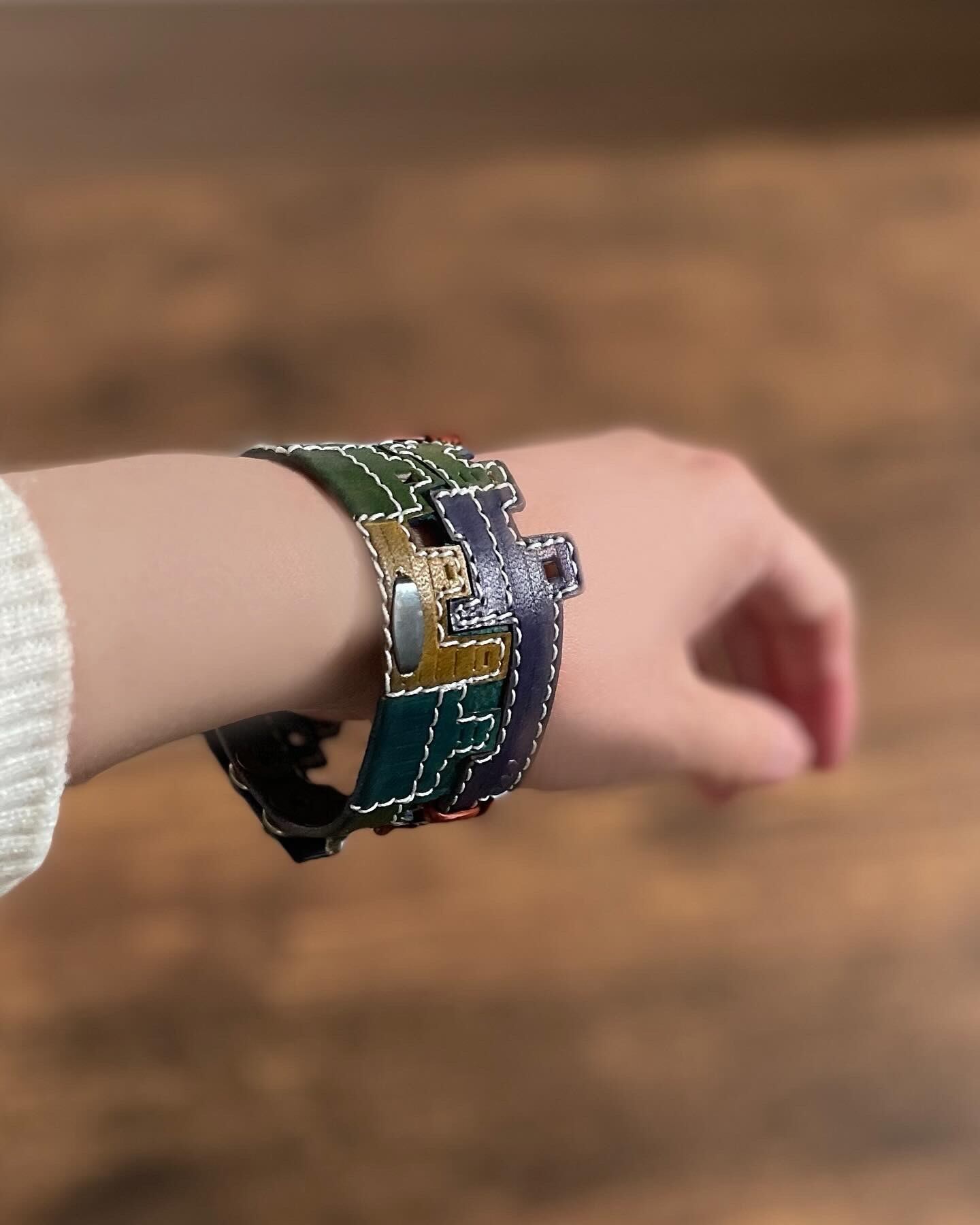 パッチワーク風にも、見え,動いている夜の工場の雰囲気がある、バングルになっていると思います。
