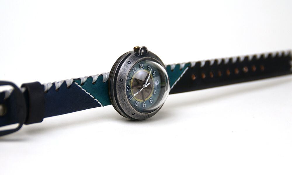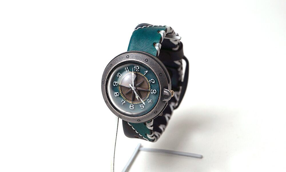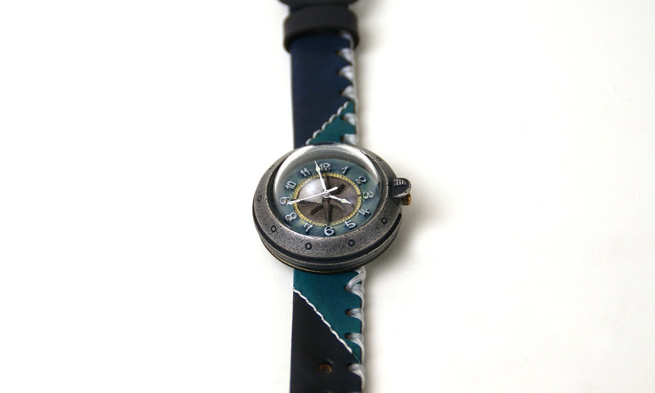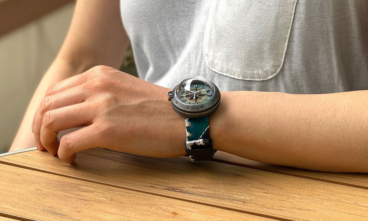 「半球レンズの時計と、コンパスをモチーフにした文字盤を合わせてほしい」というお客さんの声から生まれた時計です。
