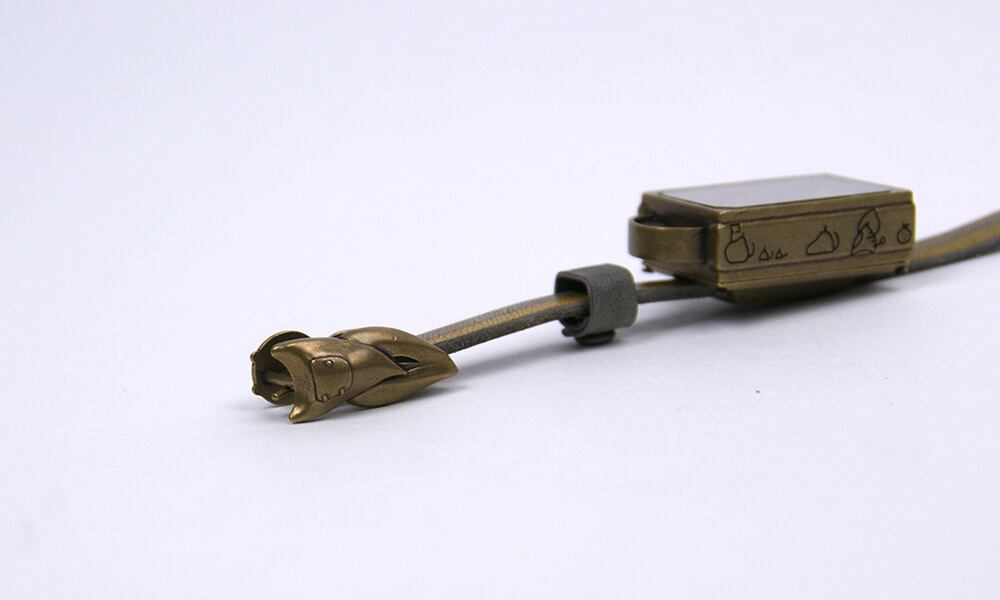 「トキのはざまを表すツートンカラーの革ベルト」・・・ベルトはトキのはざまを表すツートンカラーの革ベルトです。
