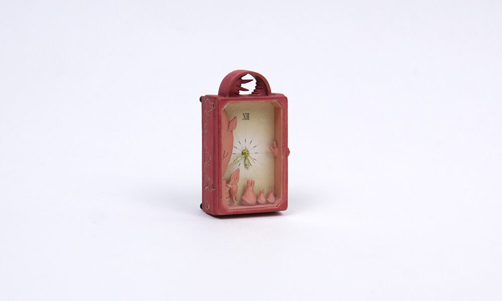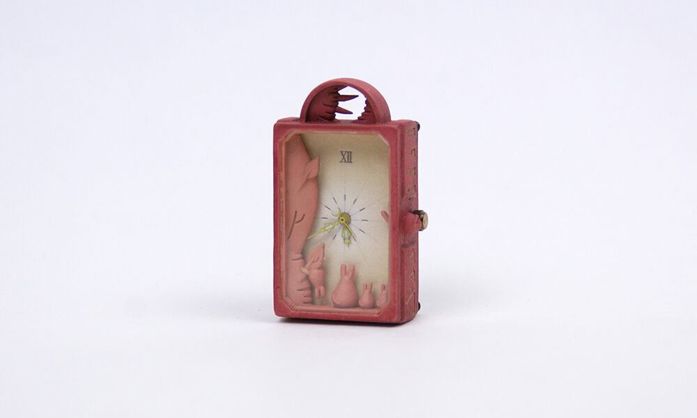 光の角度により、彼らの姿が刻々と文字盤に影を落とすような、そんな影絵仕立ての時計です。