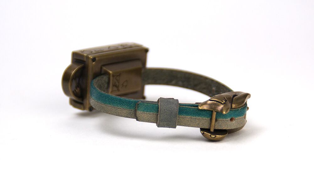 「トキのはざまを表すツートンカラーの革ベルト」・・・ベルトはトキのはざまを表すツートンカラーの革ベルトです。