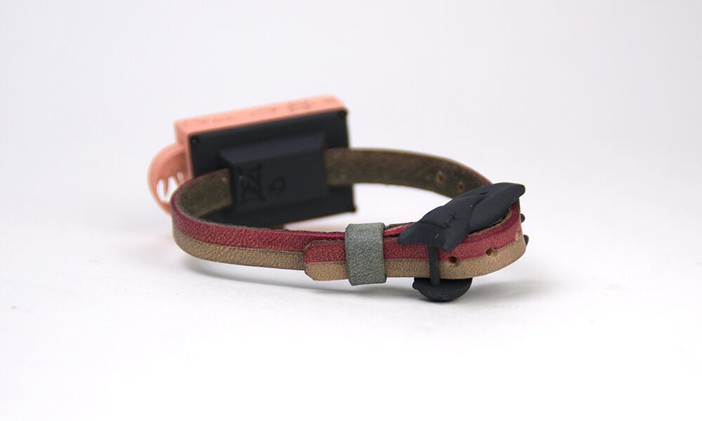 「トキのはざまを表すツートンカラーの革ベルト」・・・ベルトはトキのはざまを表すツートンカラーの革ベルトです。