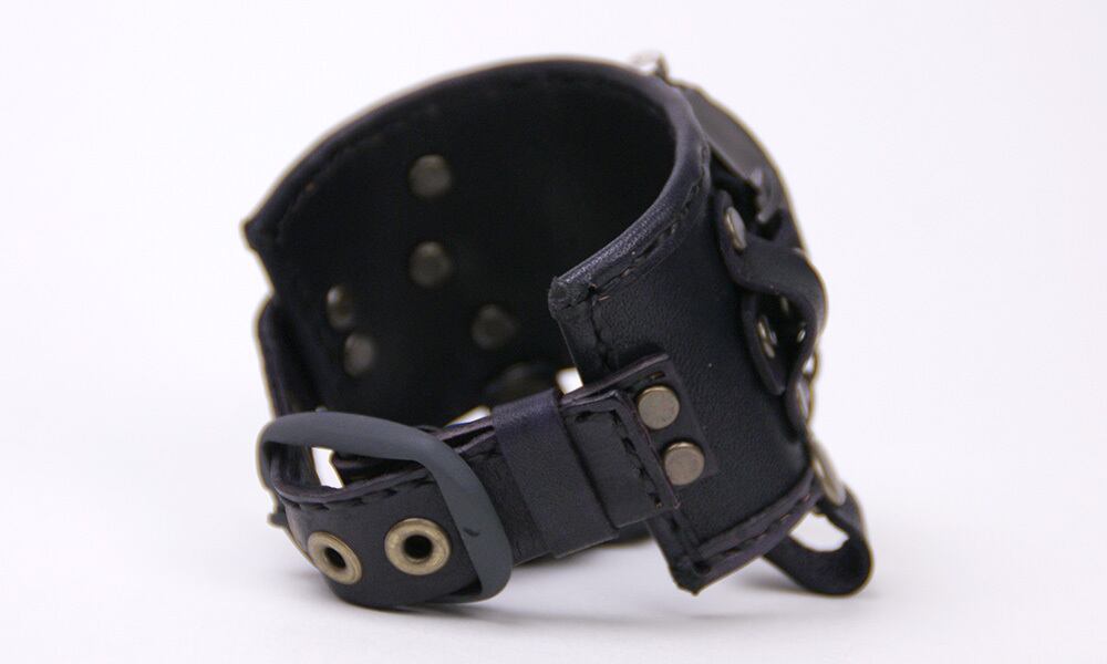 「本革を惜しみなく使用した両面銀面の手縫いの贅沢なバングル」・・・本革を惜しみなくつぎ込んでいる贅沢なバングル。