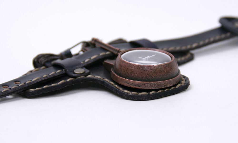 「着せ替えと取り外し」・・・アパッチはバングル部分と時計本体が分離でき、懐中時計(時計ネックレス)としてもお使い頂けます。 しかし、ボルトとナットを外さなくてはいけないなど、ちょっと面倒ですので、あまり現実的ではないかもしれません。 ただ、これにより、革の着せ替えなどもご自宅で出来ますので、とても便利です。