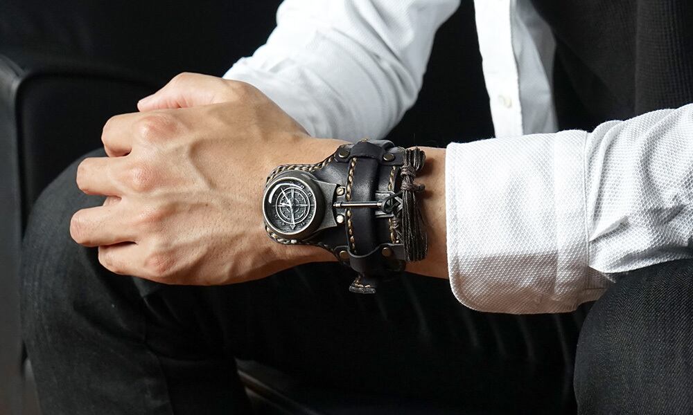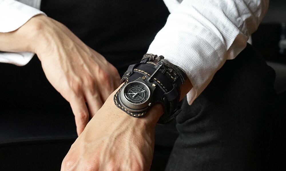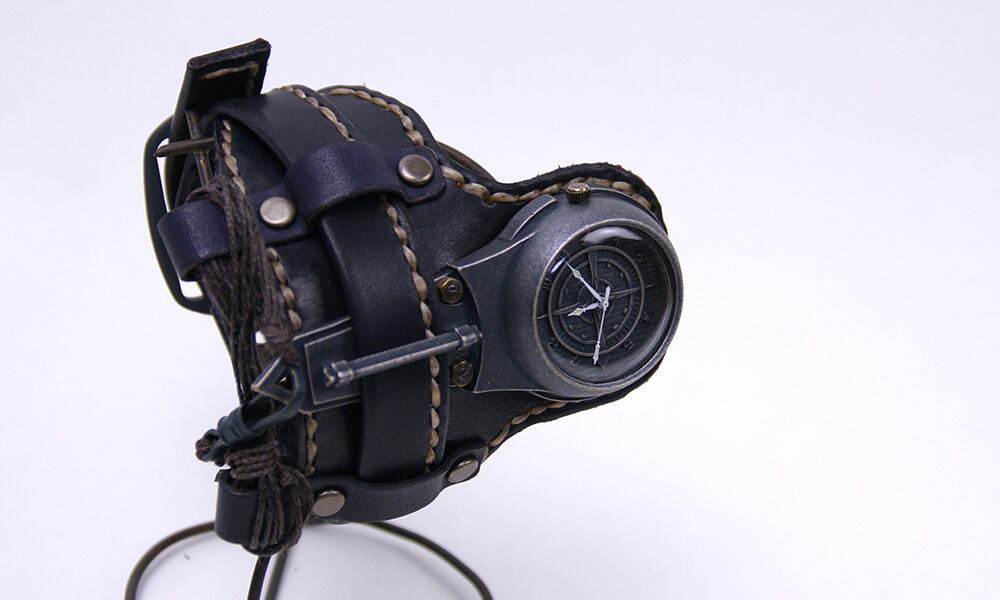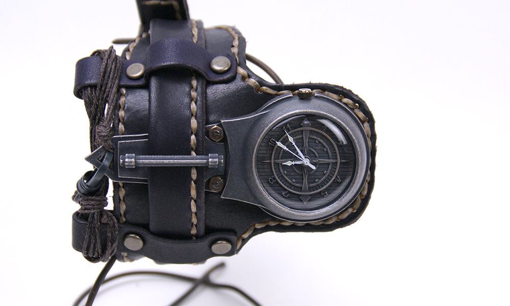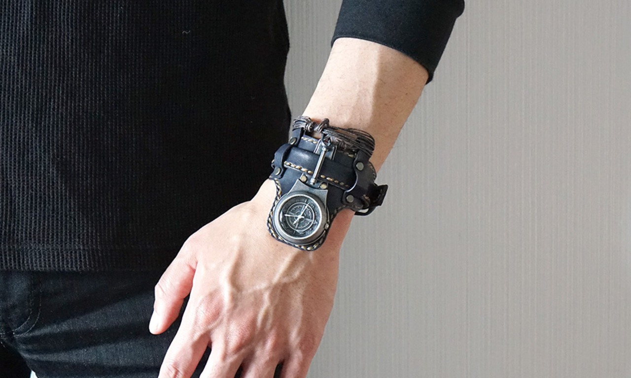 まるでアニメから出てきたようなデザインの時計とよくご意見を頂く、革のバングルタイプの腕時計。