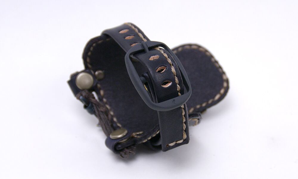 「本革手縫いのバングル」・・・前回のアパッチよりも厚みを増やした、本革を、一針一針手縫いで縫い上げ、革バングルに仕上げた今回のアパッチの革バングルは、さらに見る人を虜にする圧倒的な存在感です。
