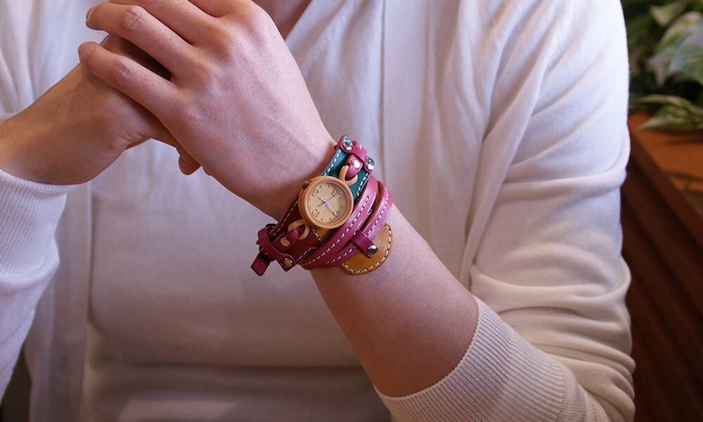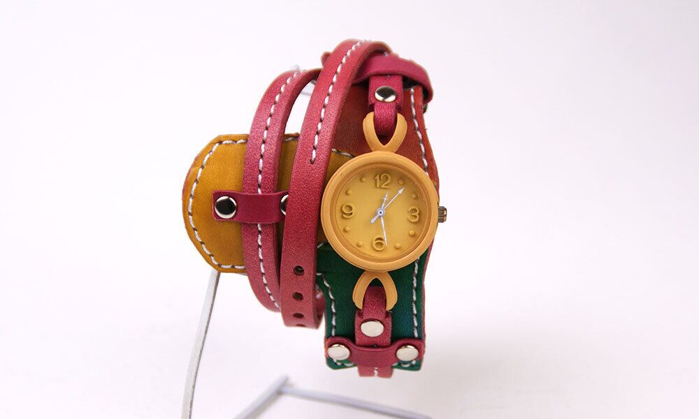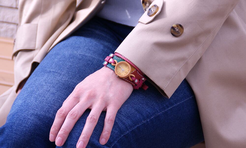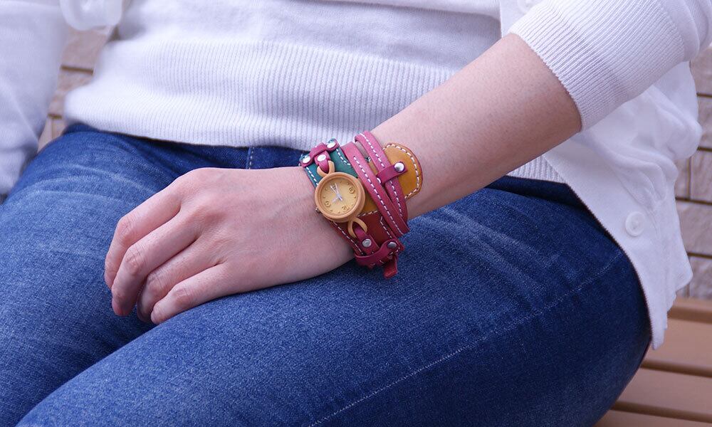 一目で他の人がしていない腕時計と分かる、インパクトのあるカラフルなバングルタイプ。