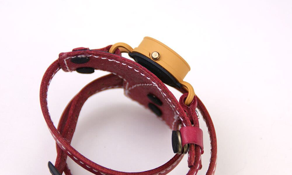 「時計本体」・・・キャンディーの包み紙に見立てた時計の本体は、濃いめの落ち着いたマットなイエローに塗られています。