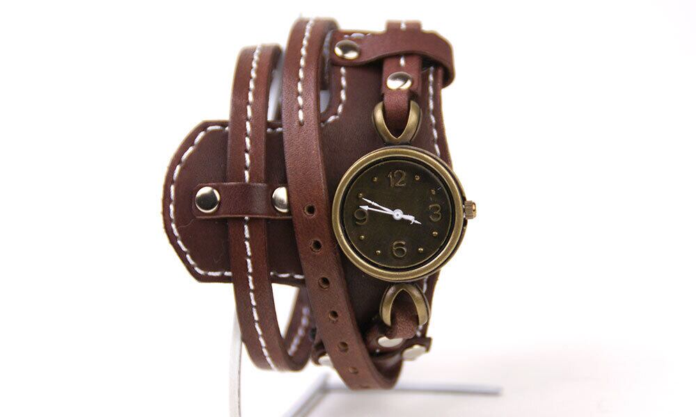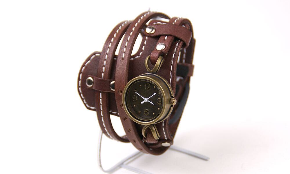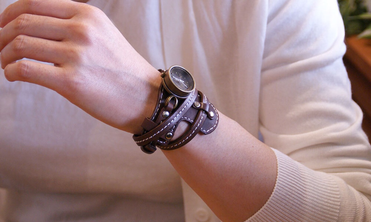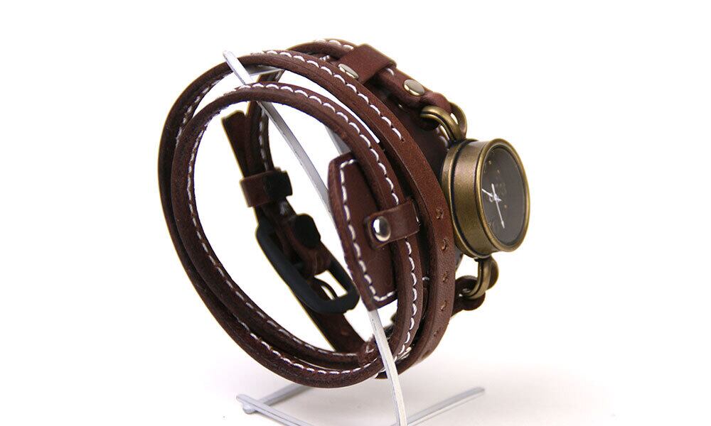 ありそうで無かった、ゴツすぎない、少し軽めのバングルウオッチです。ミシンステッチを入れて仕上げました。