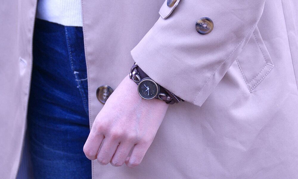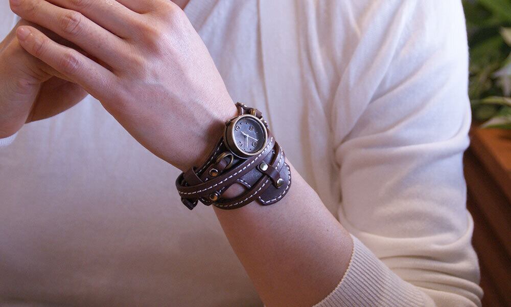「本革バングル」・・・あえて少しラフに仕上げた、バングルタイプの腕時計です。