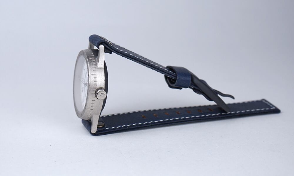 「撮影に使用したベルトの種類」・・・今回、この時計には、「紺色」を合わせて撮影しました。