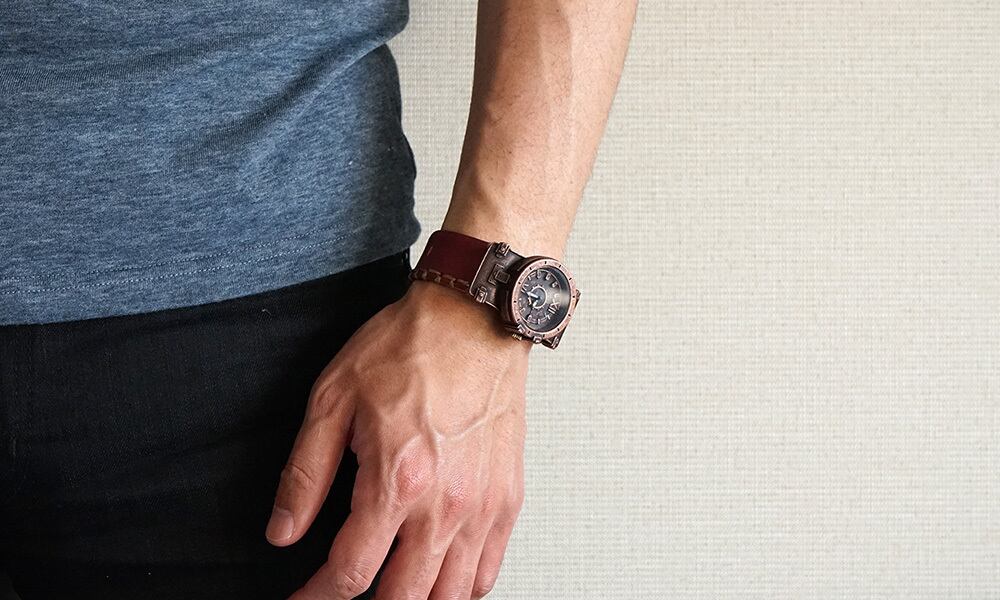 さらにキズやムラなどをあえて生じさせたり、手塗りで革を塗るなどの手法を行っている時計もあります。