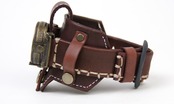 「本革バングル」・・・本革を贅沢に使用した両面銀面のバングル。時計のベルトは手縫いで、バングル部分は革ミシンで・・・とステッチを分けています。ステッチの色は固定です。
