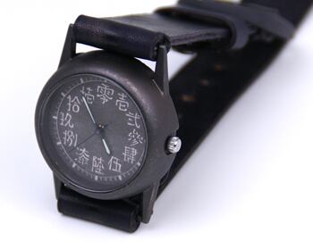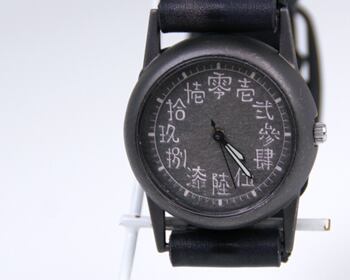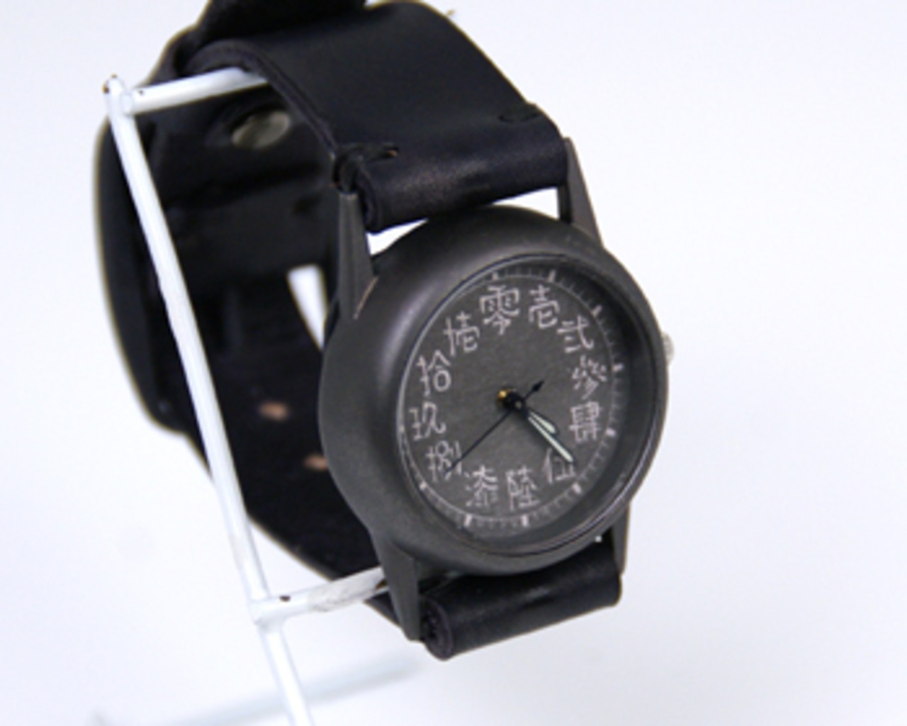 墨丸:黒旧漢字:蔵の中で何世代にも渡って忘れられていたような腕時計 : くるき亭のオリジナルデザインの時計