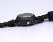 焼きあがったような黒い時計本体は、本体横のリューズ部分の下地に線を入れており、見えないオシャレがされています。