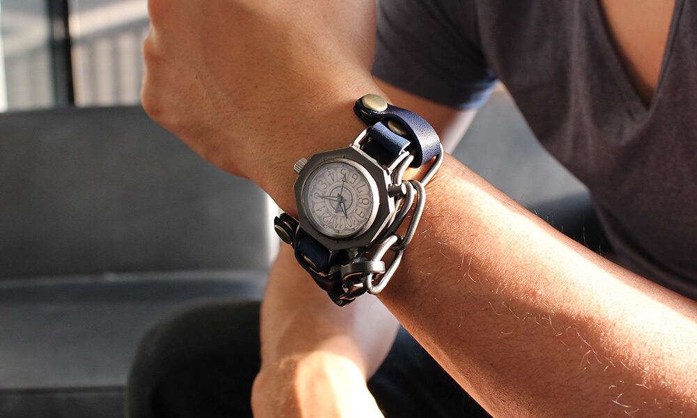 くるき亭の以前の人気時計「楔」シリーズを彷彿とさせる、個性的な腕時計です。