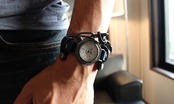 無者レザク時計の時計本体と、Hushのバングルをアレンジしたベルトを合わせた個性的な腕時計です。