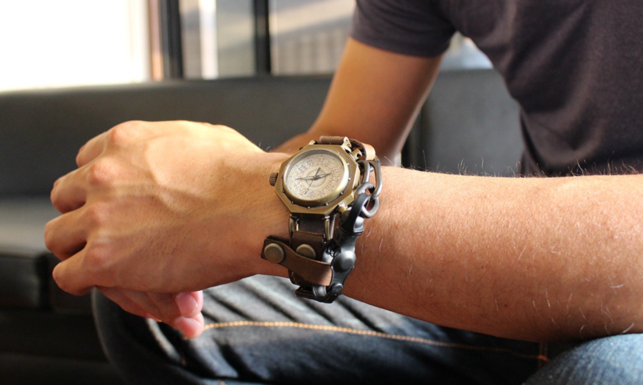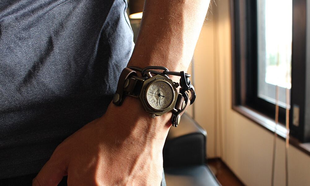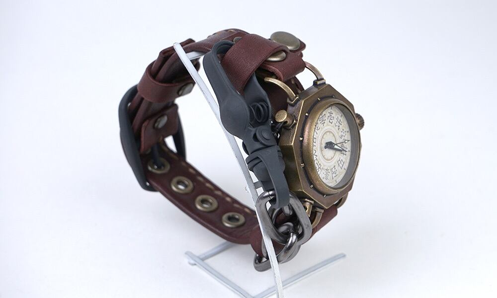 くるき亭の以前の人気時計「楔」シリーズを彷彿とさせる、個性的な腕時計です。