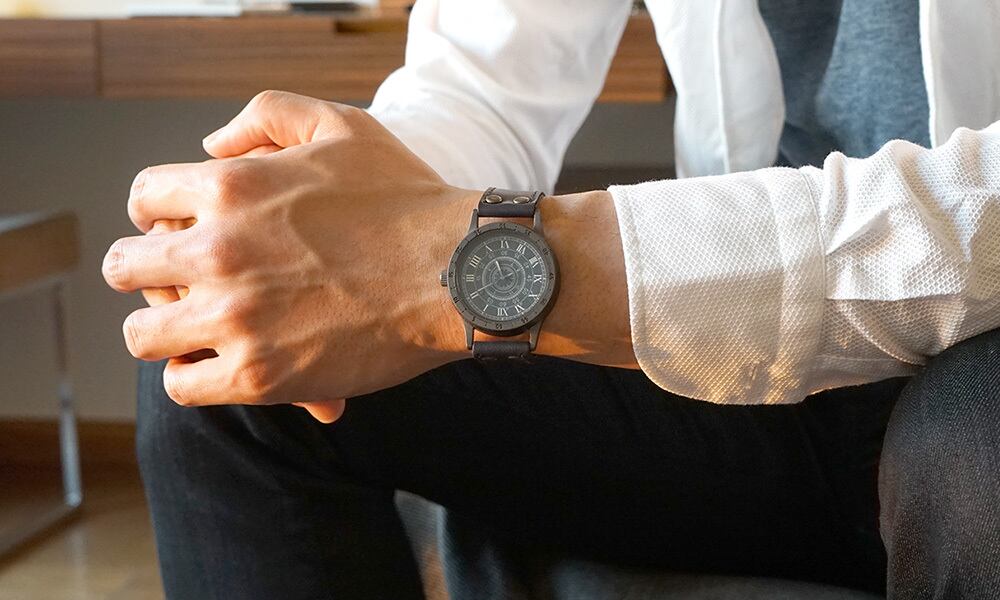 遺物を探し、旅に出る、そんな考古学者をモチーフにした腕時計。