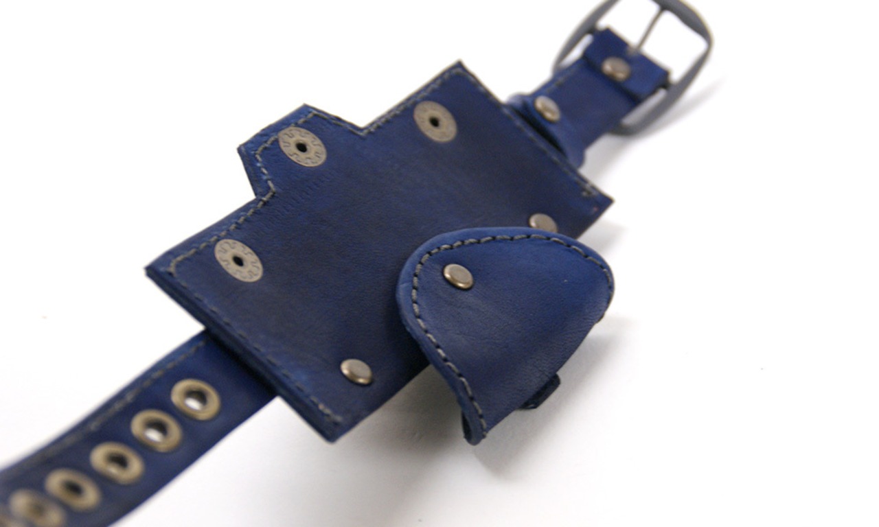 「本革バングル」・・・ミシン縫いで両面銀面(革のツルツルした面)に縫い上げた着せ替え可能なバングルです。