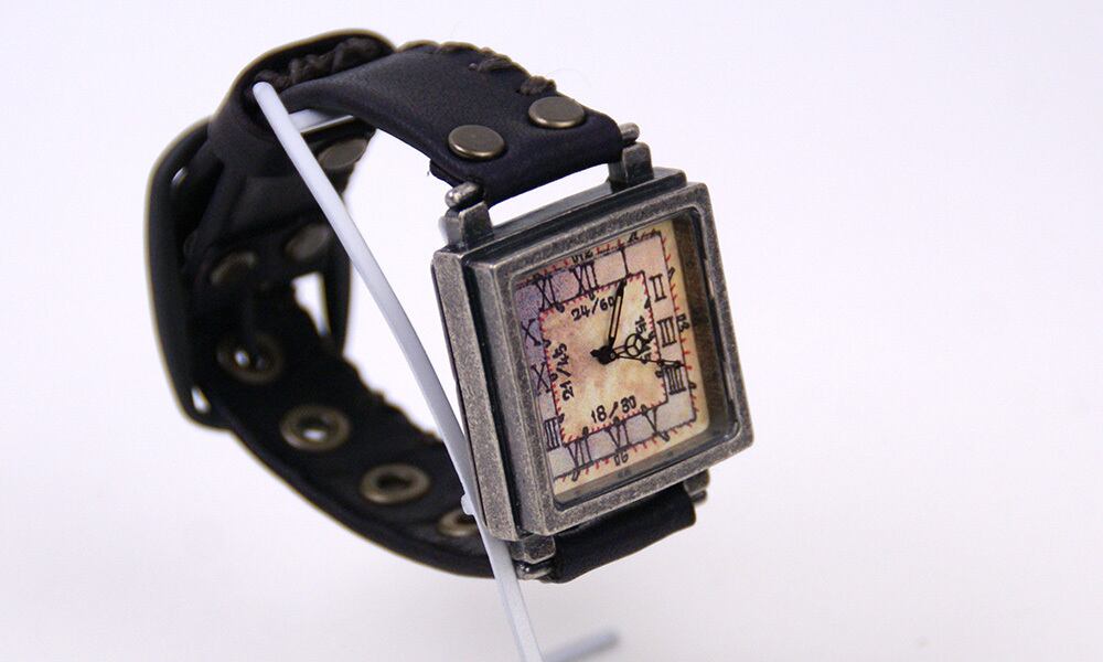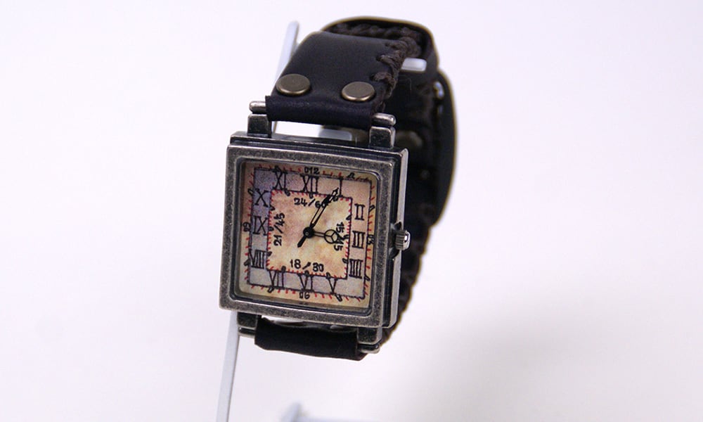時代を経たようなアンティークな銀色の本体と、まるでそこだけ時間の流れが異なるかのような文字盤が特徴の腕時計です。