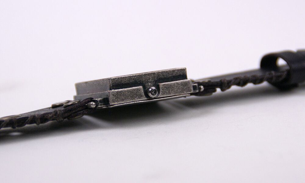 独特のデザインながら、主張しすぎず、しかし、他とは違う革ベルトになっています。ステッチ色は固定です