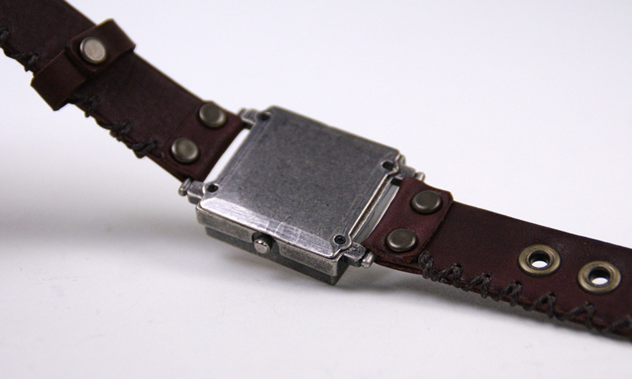 独特のデザインながら、主張しすぎず、しかし、他とは違う革ベルトになっています。ステッチ色は固定です