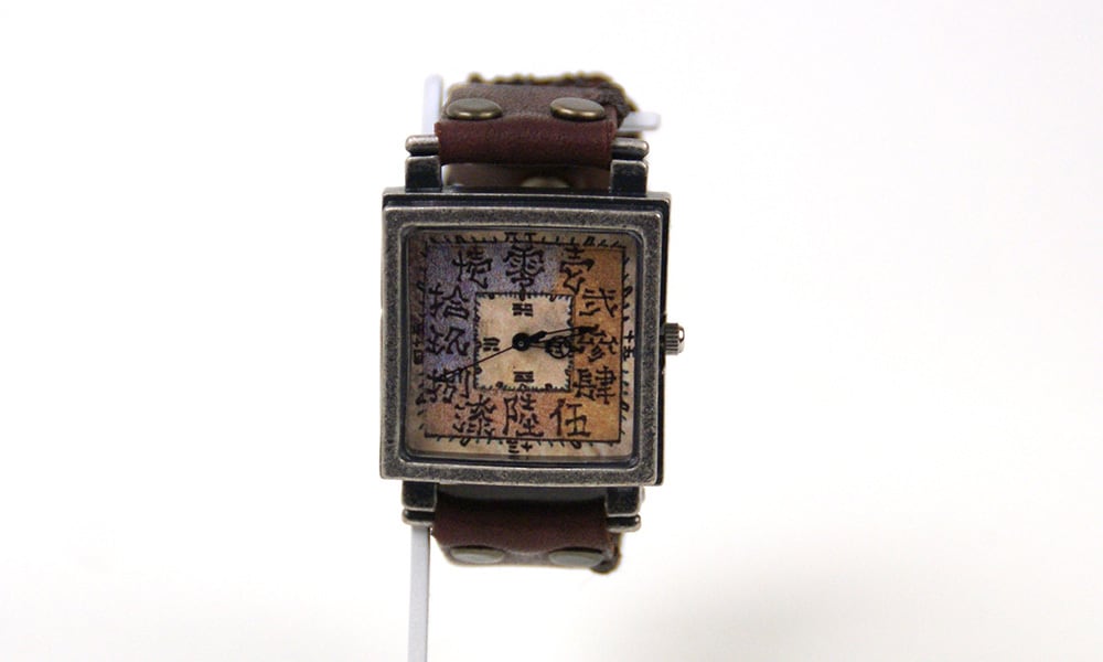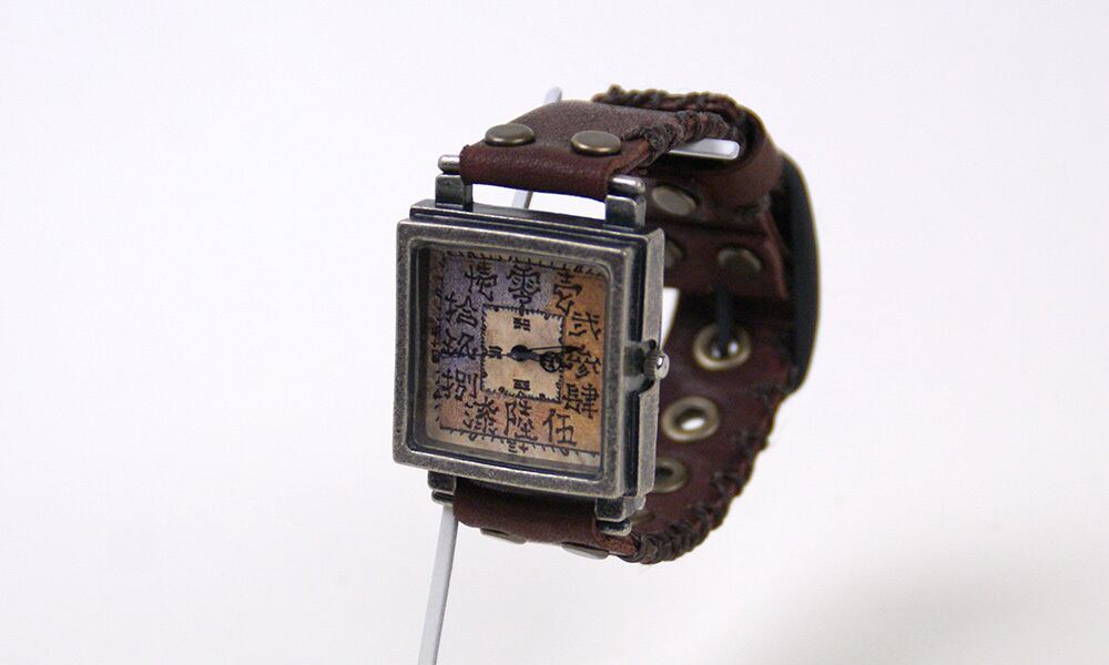 時代を経たようなアンティークな銀色の本体と、まるでそこだけ時間の流れが異なるかのような文字盤が特徴の腕時計です。