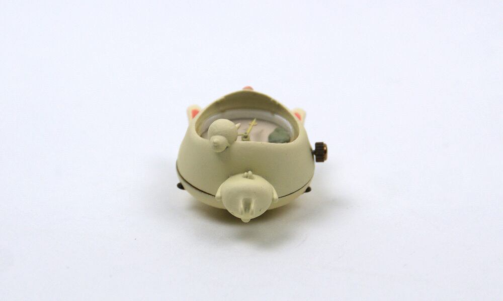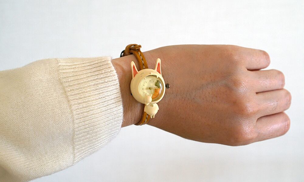 身長は約4センチ(耳の分だけ猫よりも少し高い)、顔の大きさは2.5センチ、文字盤部分の直径は約1.5センチと小さな腕時計ですので、腕につけてもさほど違和感はありません。