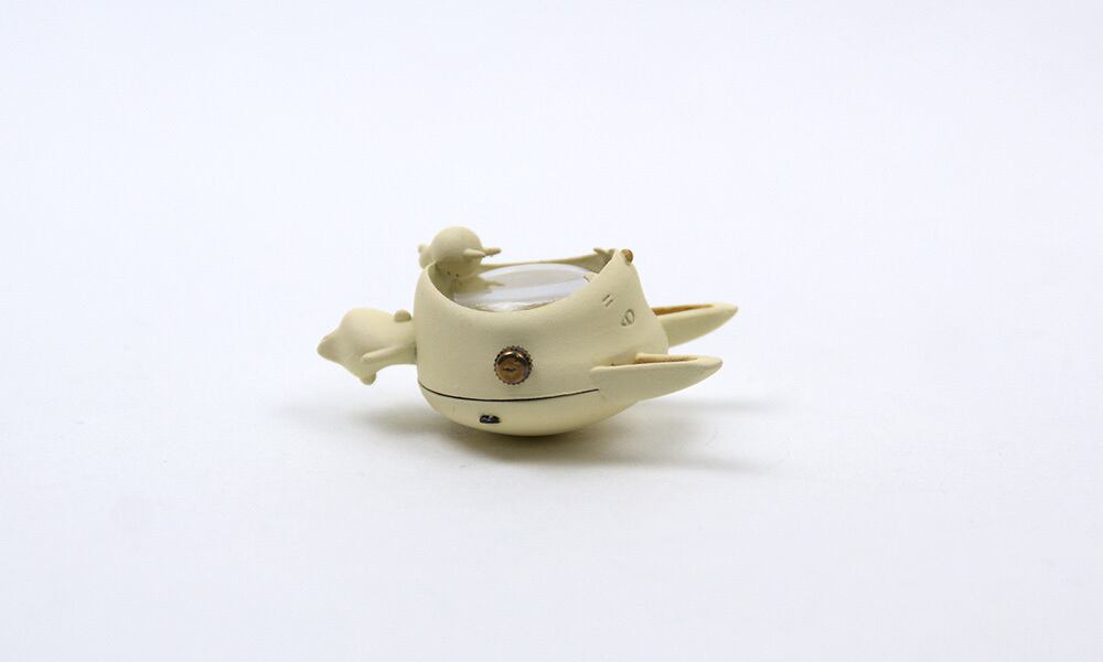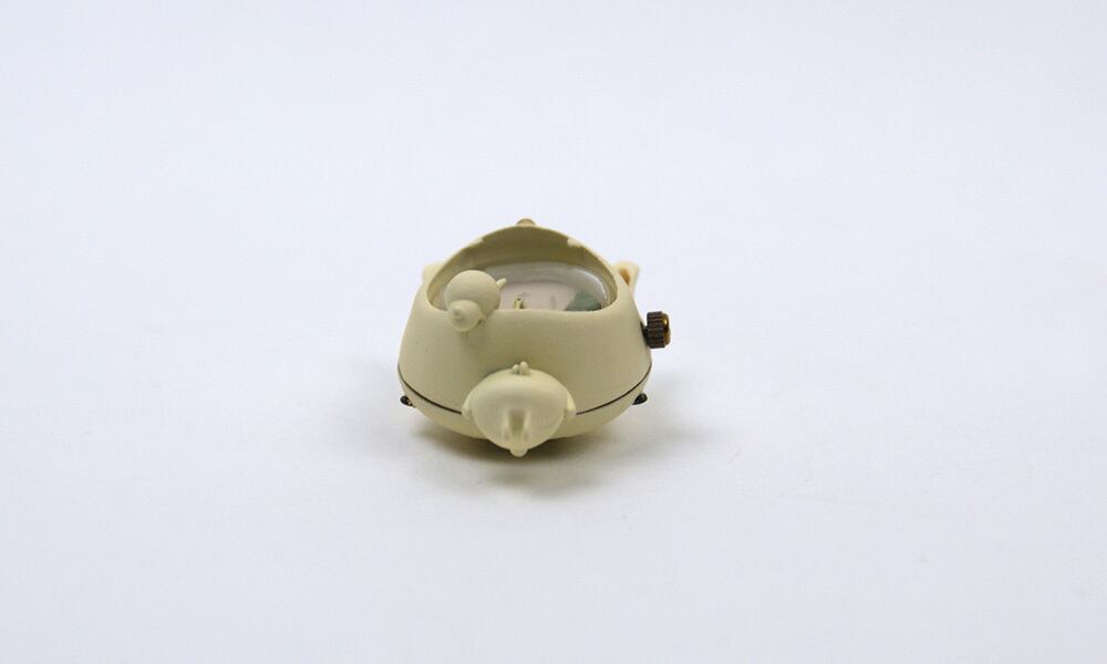 身長4センチ。顔の大きさ約2,5センチ。文字盤直径約1.5センチ