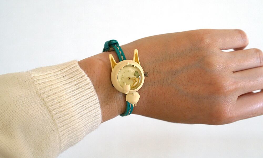 身長は約4センチ(耳の分だけ猫よりも少し高い)、顔の大きさは2.5センチ、文字盤部分の直径は約1.5センチと小さな腕時計ですので、腕につけてもさほど違和感はありません。