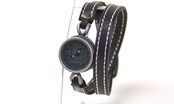 ミシン縫いの高級感のある2重巻きのバングルと、深みのあるメタリックな時計が組み合わさったクールな腕時計です。