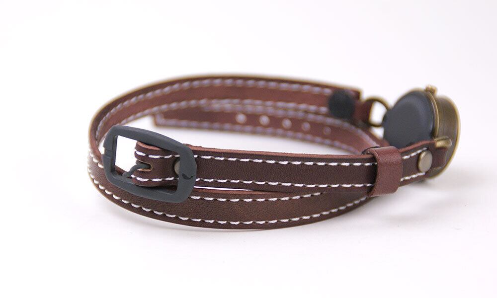 「2重巻きの本革ベルト」・・・本革から幅10ミリのベルトを切り出し、2重巻きにしています。その後、革ミシンでステッチを入れることで高級感を出しています。