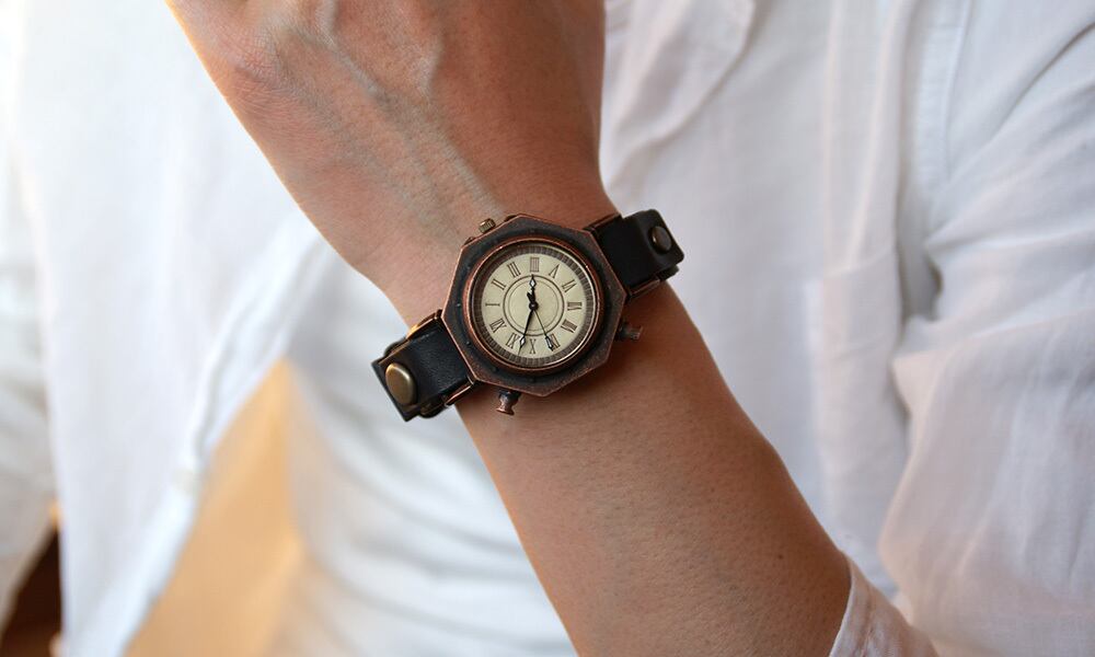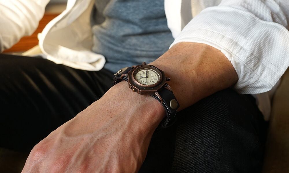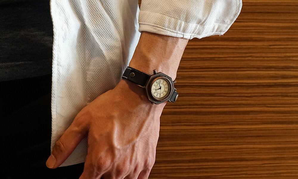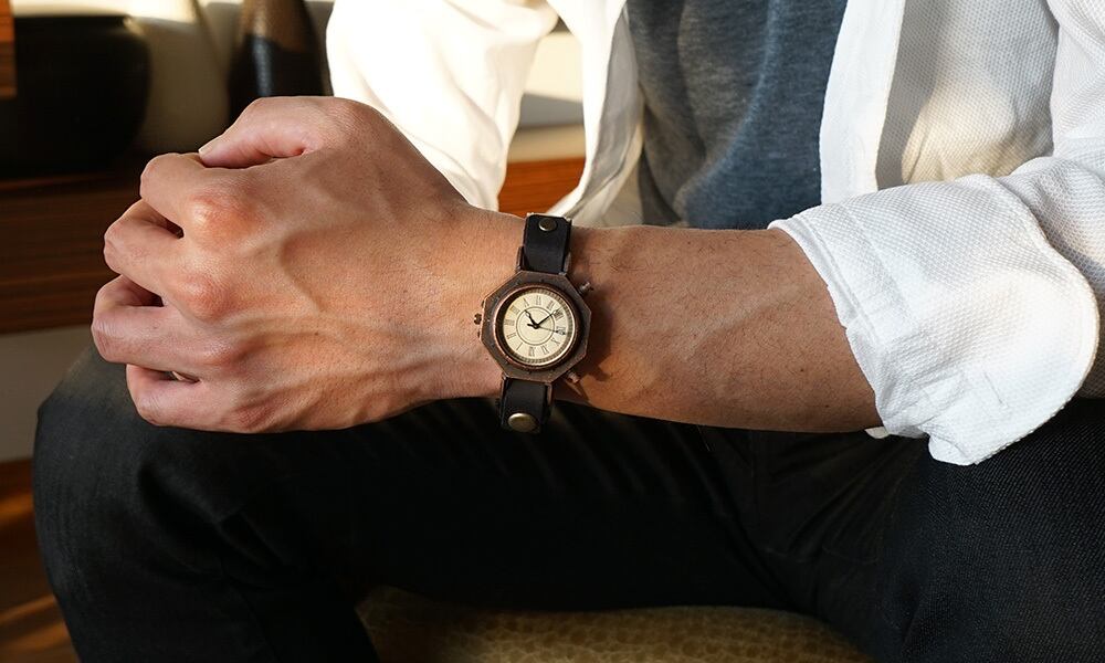柱時計のようなクラシックな腕時計をコンセプトに、+アルファの遊び心を加えた腕時計