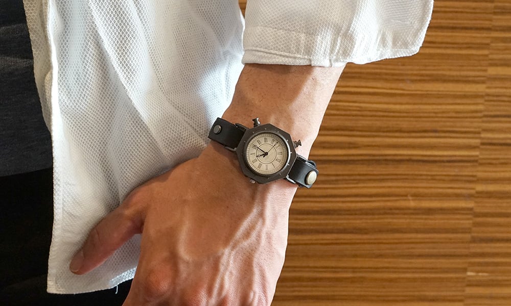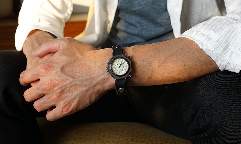 柱時計のようなクラシックな腕時計をコンセプトに、+アルファの遊び心を加えた腕時計