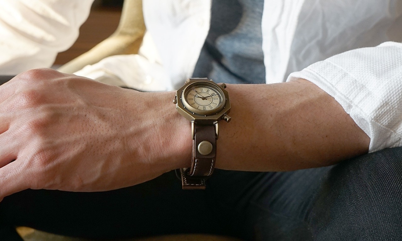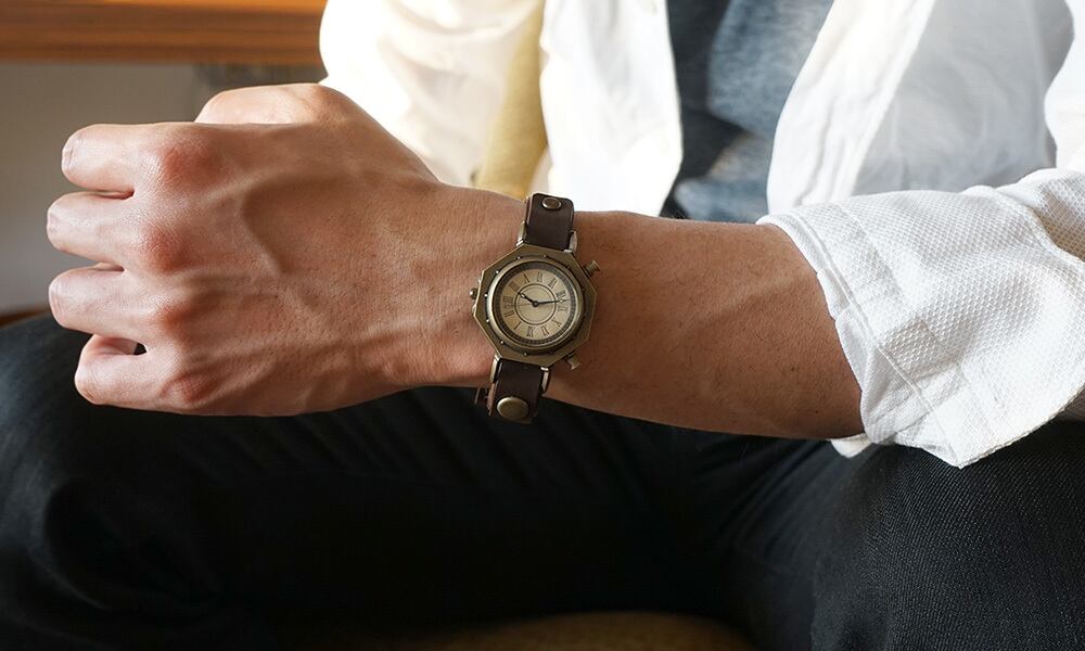 柱時計のようなクラシックな腕時計をコンセプトに、+アルファの遊び心を加えた腕時計