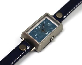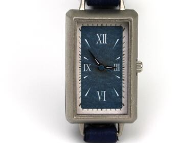 3センチ×2センチのややコンパクトな文字盤は、繊維感のある紙にシンプルなデザインを刻印することで、一見シンプルながら飽きのこない時計に仕上げています。