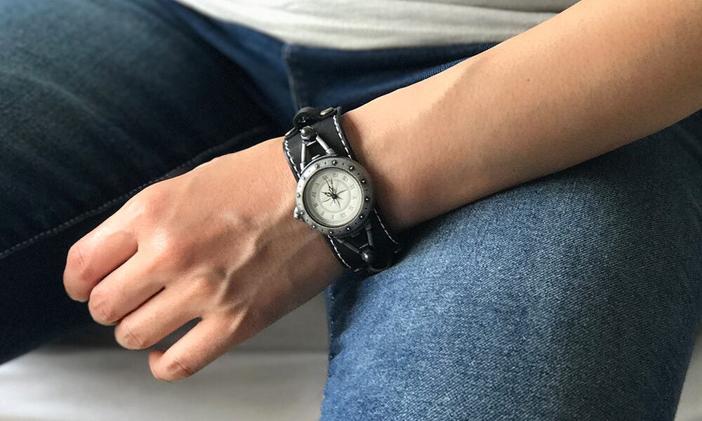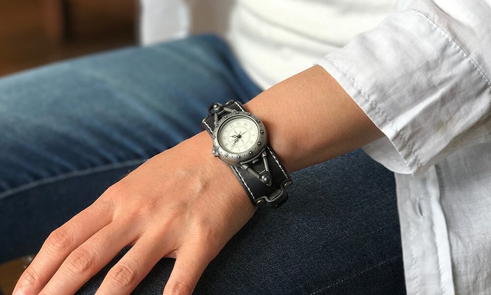 このRevoBangleは、そんな方にピッタリの腕時計で、女性でもつけられる革幅のスポーティな革バングルですので、普通の時計とは違うけれども、付けていても勇気がいらない、そんないいとこ取りの腕時計だと思います。