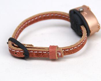 ループ(革のあまった部分を留めるパーツ)は、革が柔らかいのと、キツ目に作ってあるため、最初は入れにくいです。入れていくうちに広がってきます。
