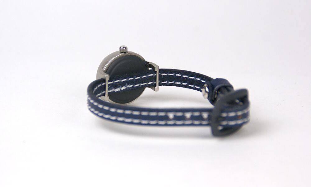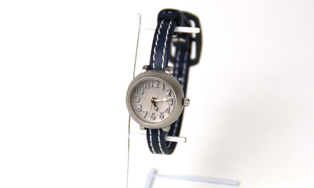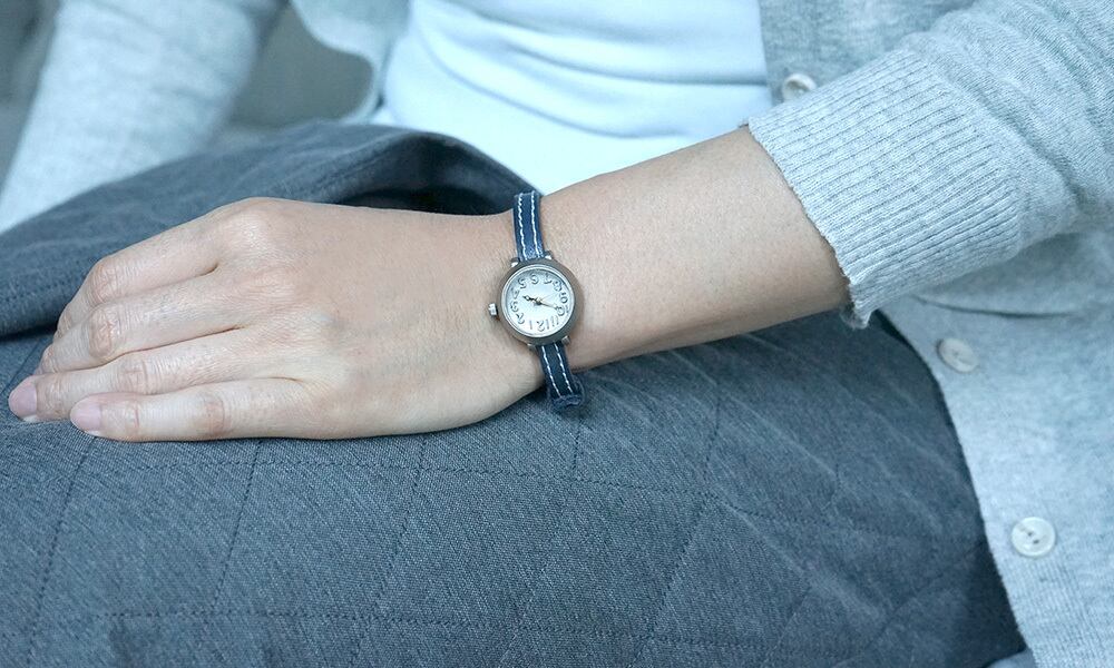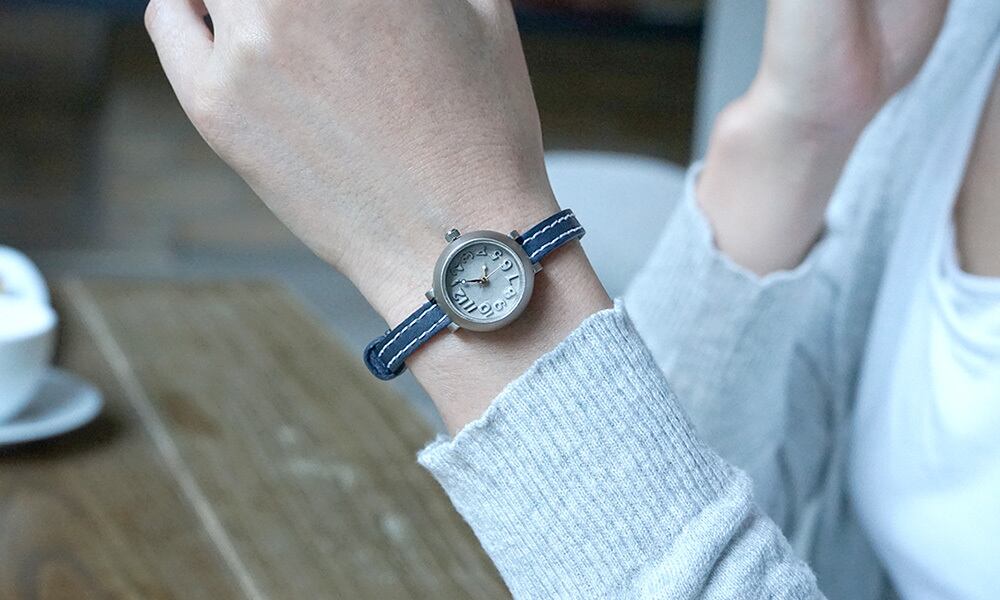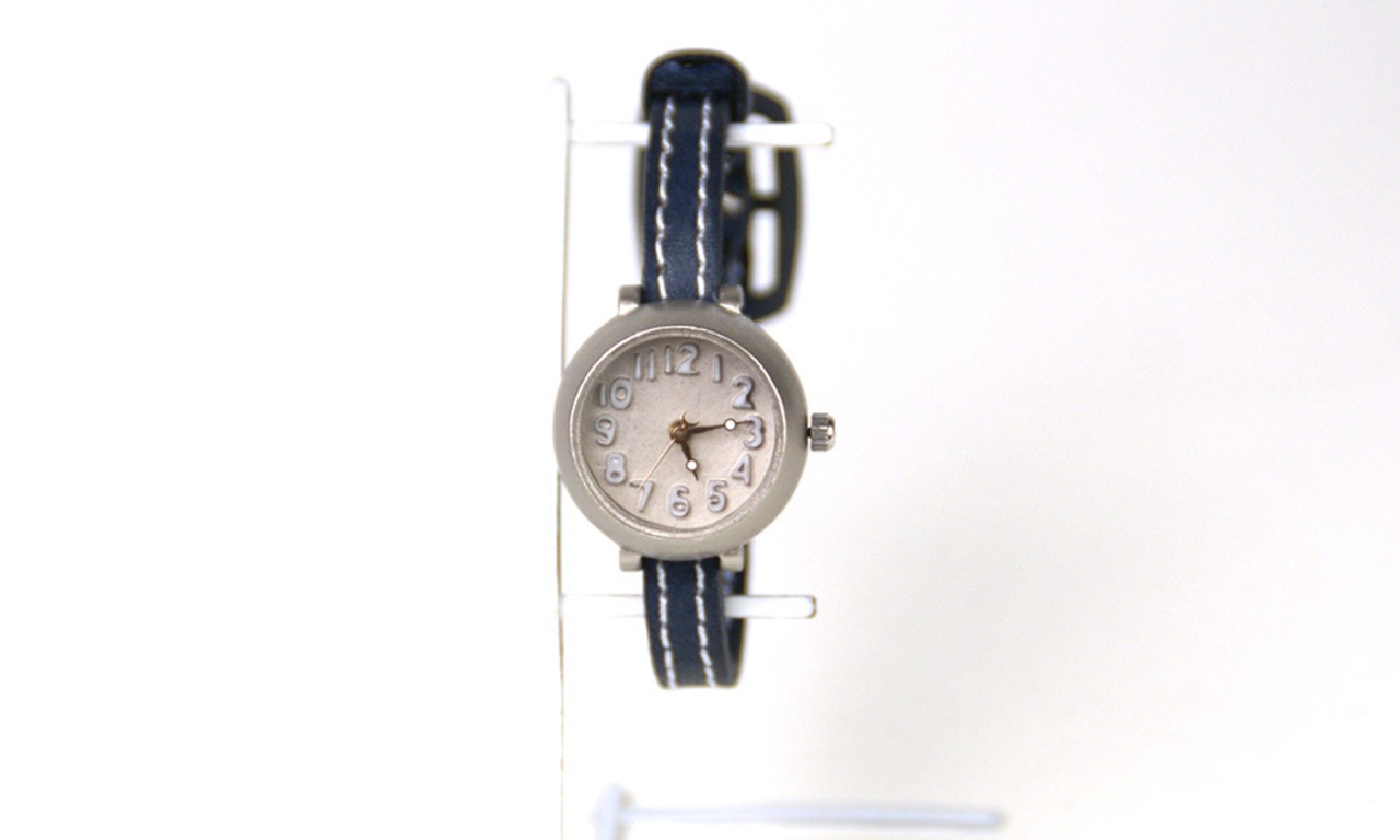 シンプルなデザインながら、本体のカタチがモコッとしていて、かわいらしい腕時計です。
