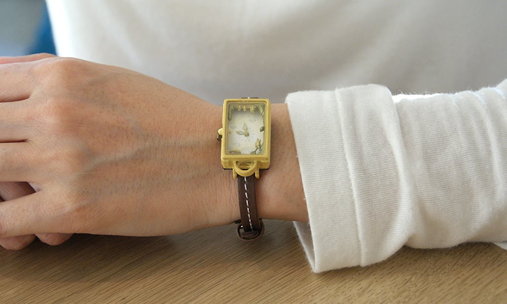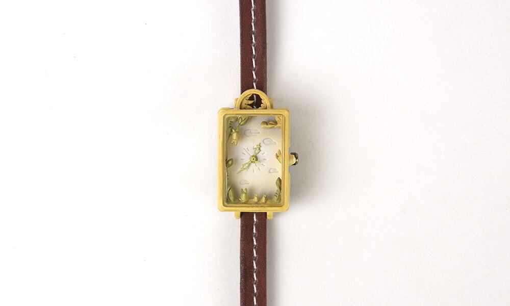 昼と夜のトキのはざまに住む動物たちを小窓からのぞいてみたような、そんな時計です。