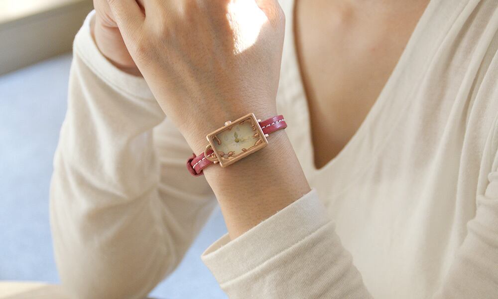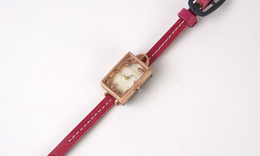 「時計加工」・・・下地塗装+手塗り+仕上げで、あたたかみのあるピンクゴールドです。