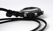 「本体側面」・・・時計の左側には太陽のフレアをイメージした凹凸がつけられ、まるで帆を結ぶように無造作にぐるぐると革紐が巻かれています。