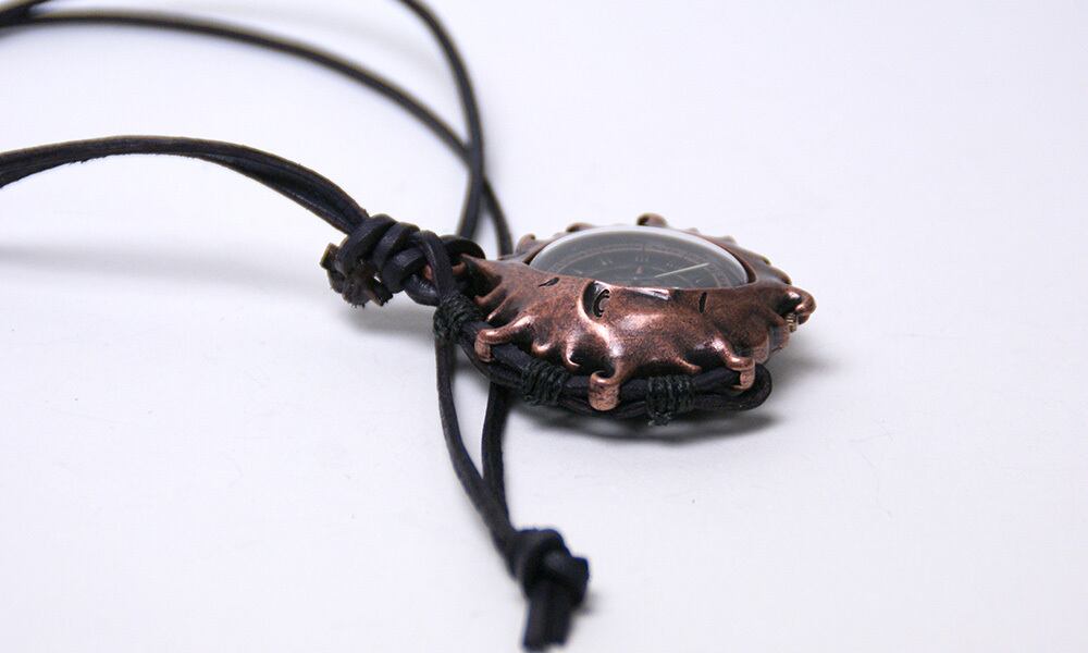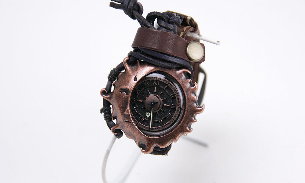 時計の頂点には一際大きな炎を上げさせ、そこに革紐が通るデザインになっています。