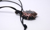「革紐」・・・革紐は黒を合わせました。この一色です。全長85センチの革紐(幅2.5ミリ・厚み1.7ミリ)を折り返しています。サイズは紐を結び直すことで調節が出来ます。