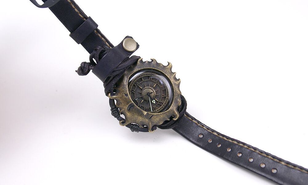 時計の頂点には一際大きな炎を上げさせ、そこに革紐が通るデザインになっています。