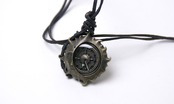「革紐」・・・革紐は黒を合わせました。この一色です。全長85センチの革紐(幅2.5ミリ・厚み1.7ミリ)を折り返しています。サイズは紐を結び直すことで調節が出来ます。