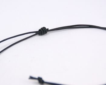 革紐全長85センチ。結び目があり、2つに折り曲げるので、40センチ位の長さになります。サイズは結び目で調節可能です。厚み15ミリ。